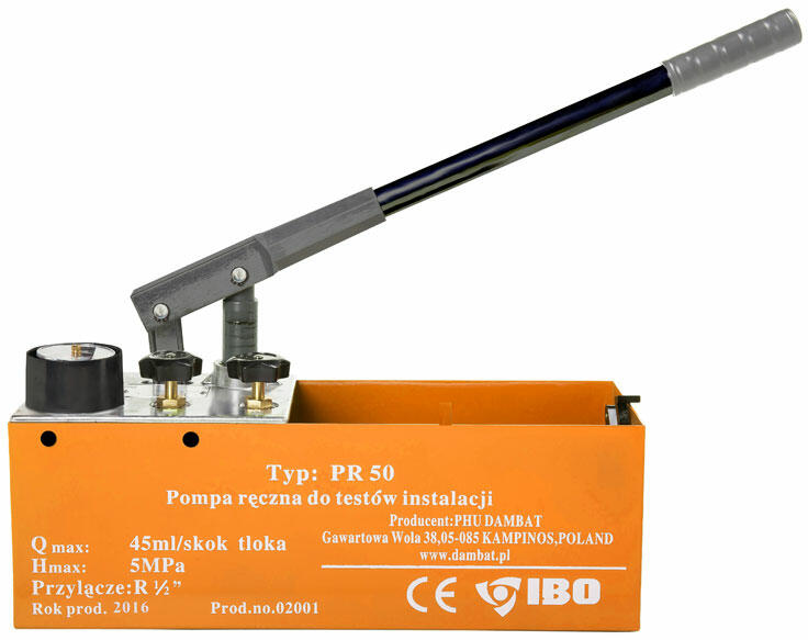 Az IBO PR-50 Precíziós próbapumpa legfőbb előnye, hogy elektromos áramellátás nélkül is használható .  Nyitott szerkezete miatt a szivattyú egyedileg 12 liters kapaciátsú .  A bevált és tartós kivitelnek köszönhetően a szivattyú nagyon népszerű eszköz a szerelőbererndezések ellenőrzésénél .