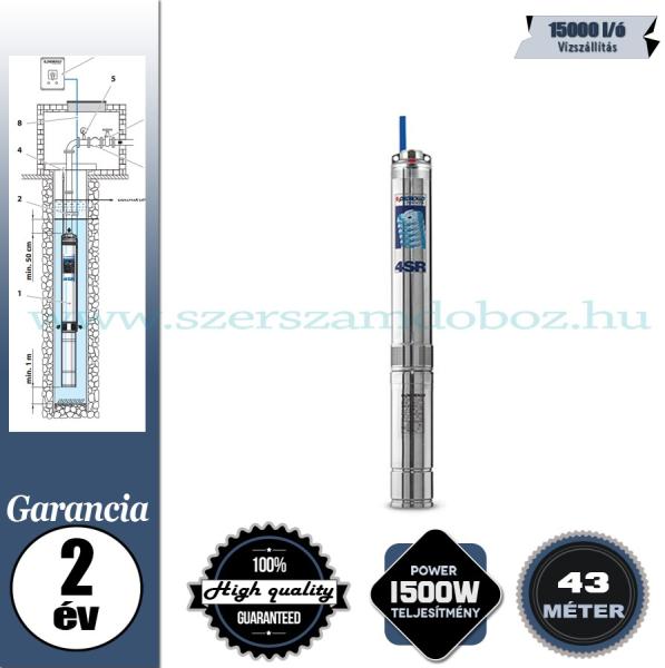 • Telepítési mélység 100 m-ig a víz szintje alá